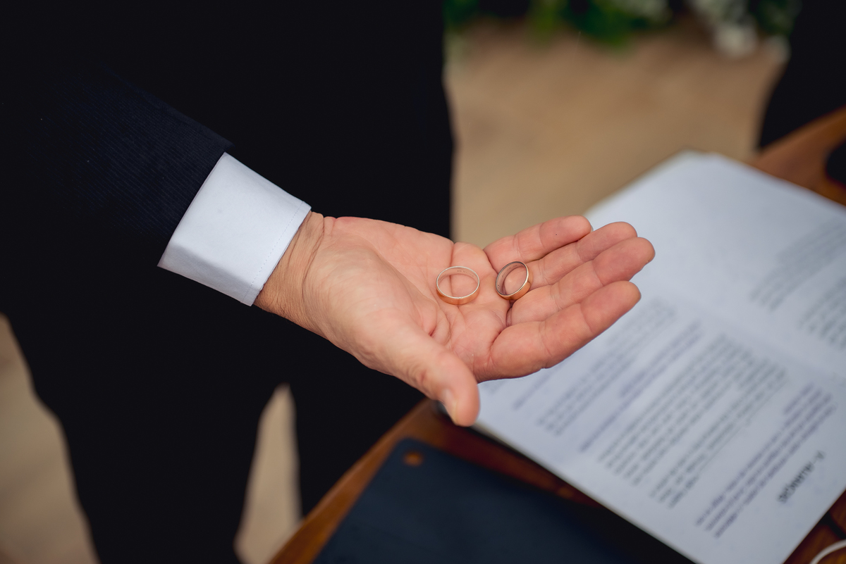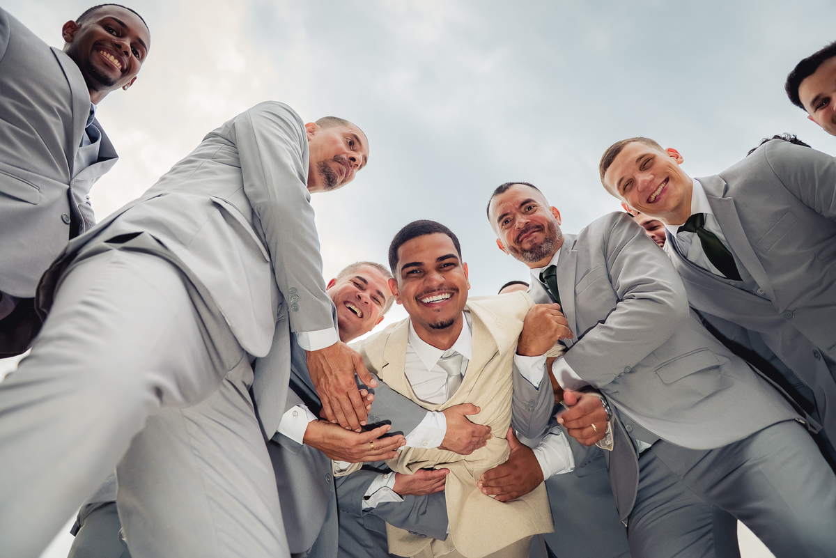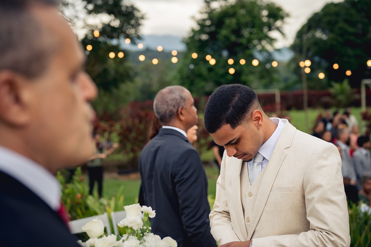O noivo também teve seus registros individuais vestindo um terno da Flower Homme.