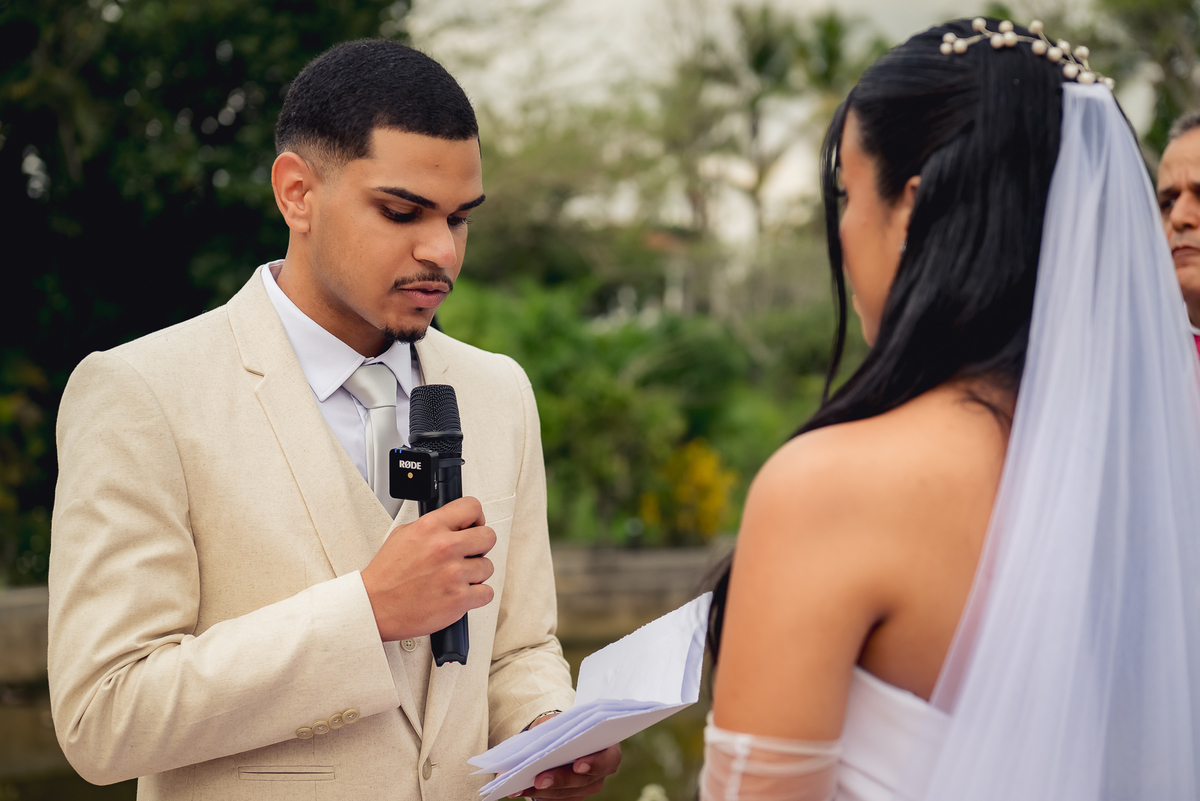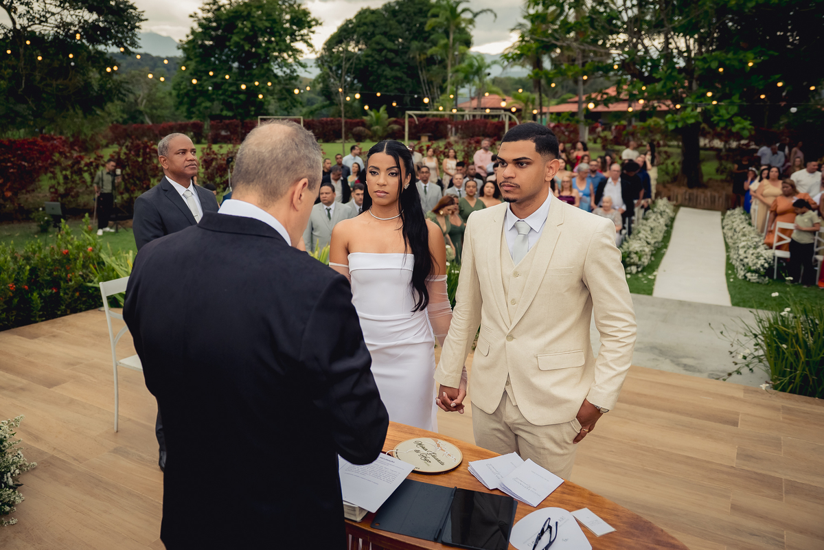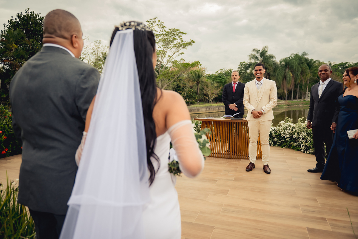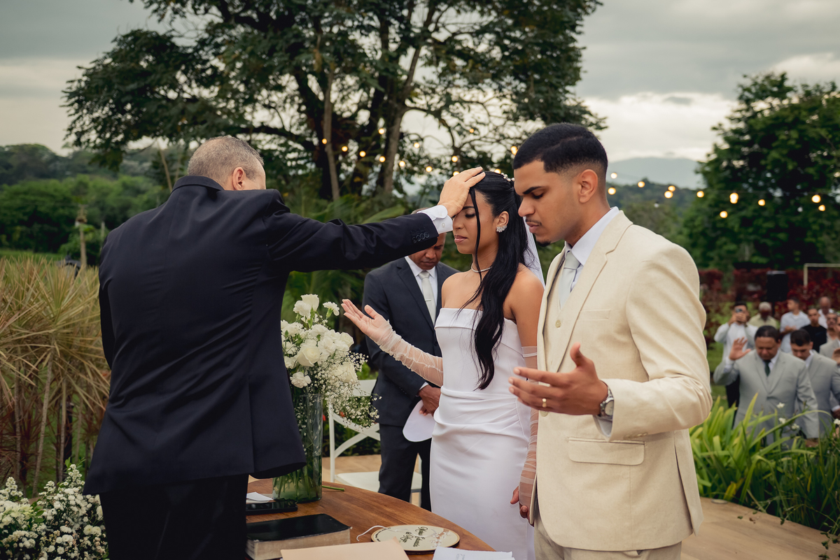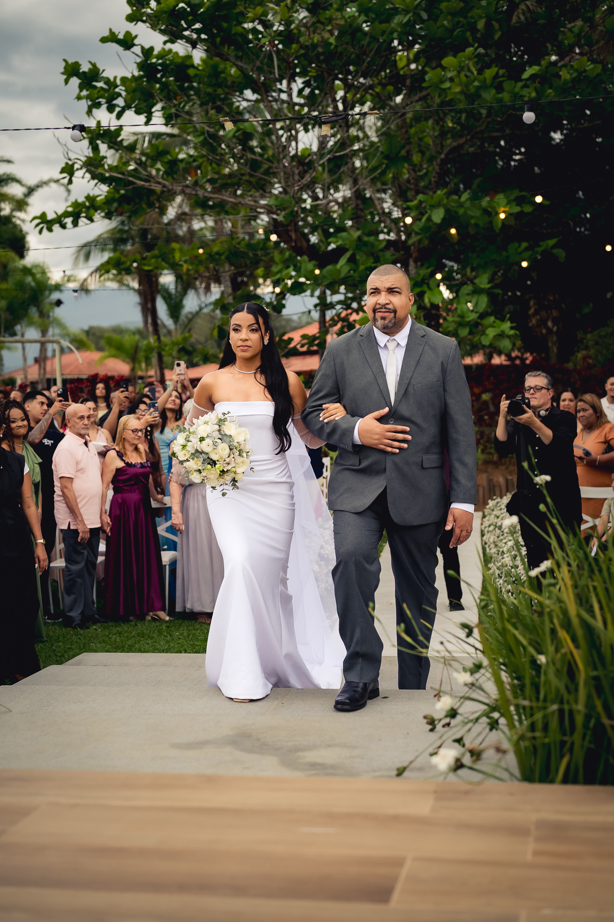 A cerimônia foi ministrada pelo pastor Marcos José, onde a noiva ostentava um lindo buquê confeccionado pela Natália Silvestre. Houveram momentos muito emocionantes com lágrimas e sorrisos. A entrada da noiva e dos padrinhos aconteceu ao som do violino ______