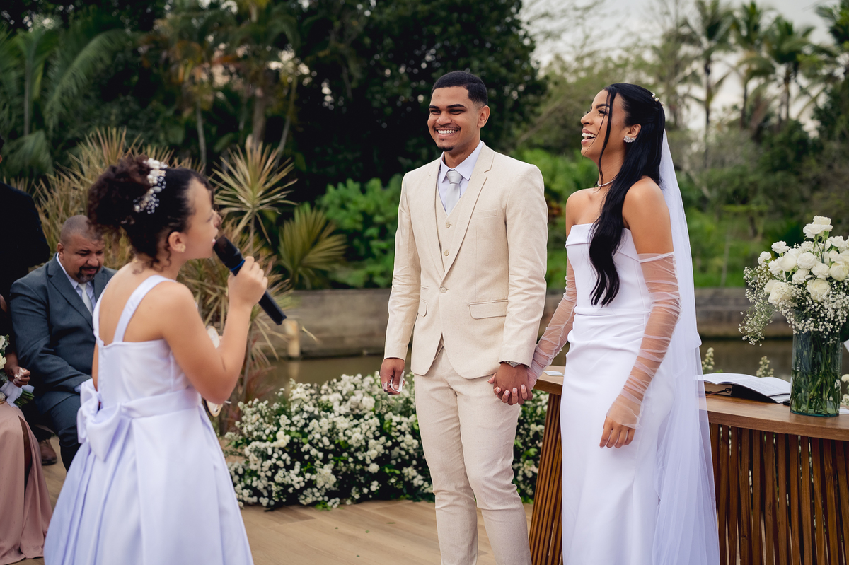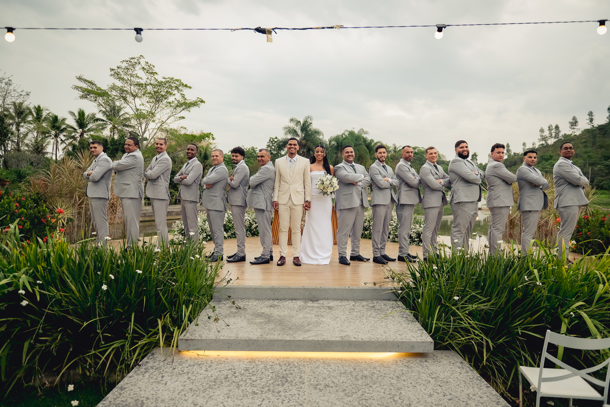 Depois do beijo foram realizadas as tradicionais fotos das madrinhas, padrinhos, pajem e daminhas, ainda no local da cerimônia.