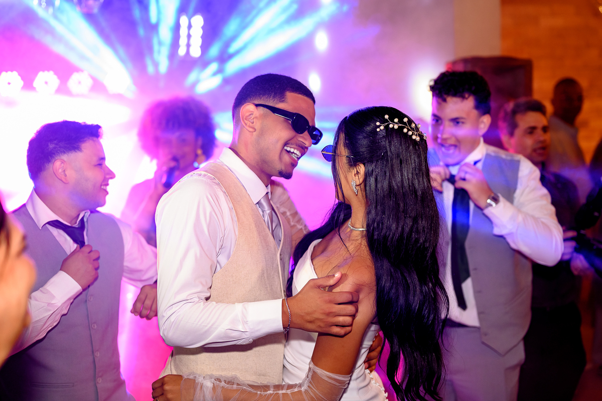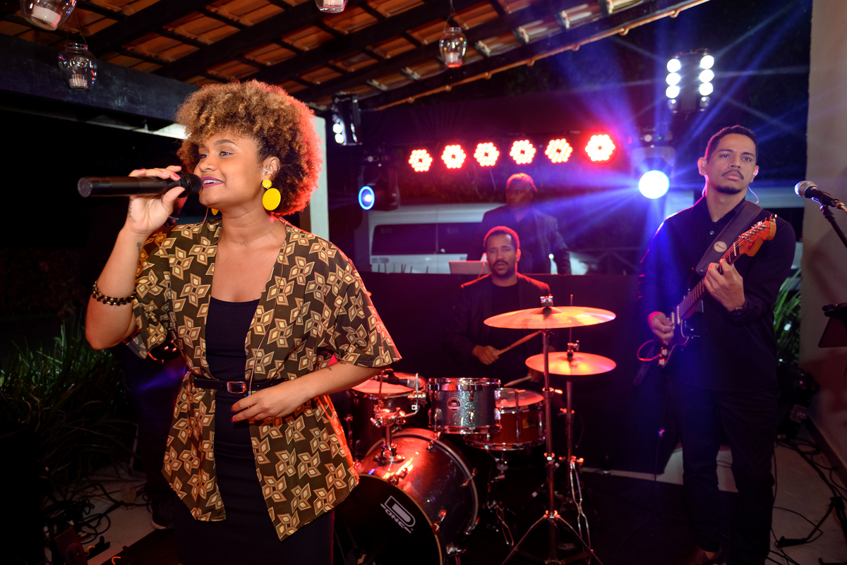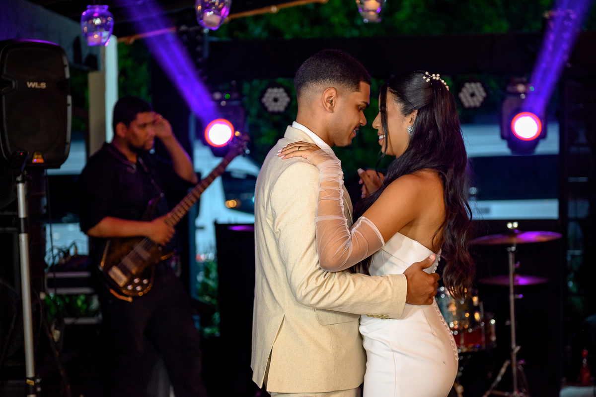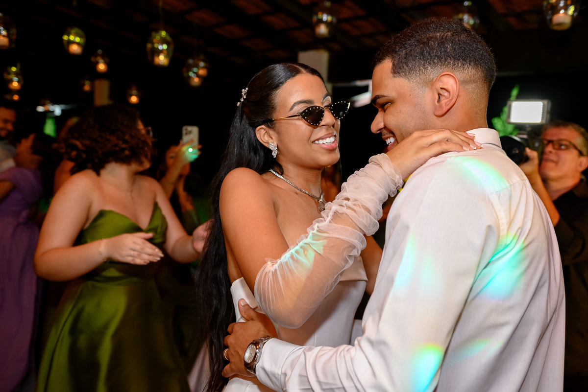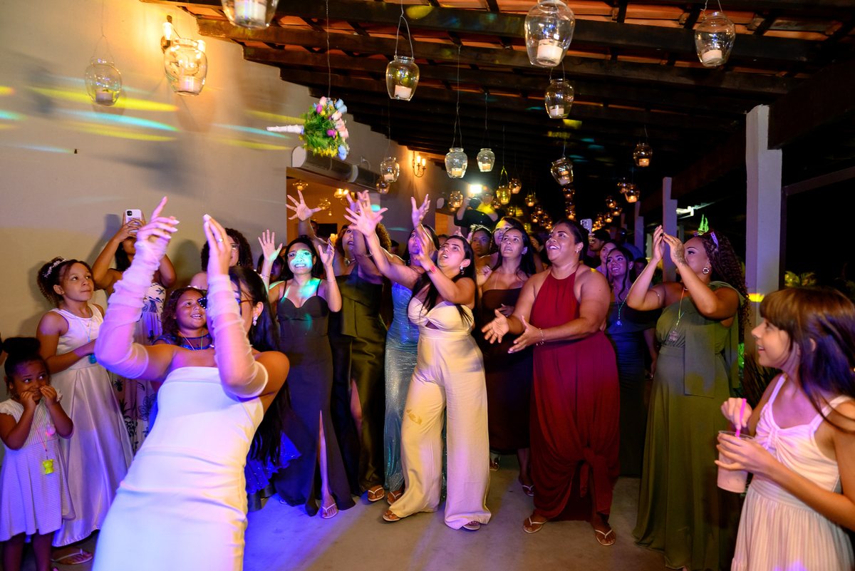 Depois desse momento os noivos realizaram a primeira dança abrindo a pista e logo após a banda WL começou a tocar e todos os convidados encheram a pista de dança. A banda tocou sem parar até a hora da noiva Duda jogar o buquê.